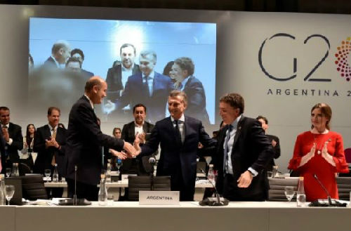 阿根廷总统马克里(中)列席G20会议落幕式。(G20峰会官网)