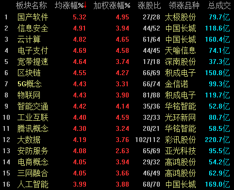 创业板暴跌之后迅速反弹,彰显生长股生命力。周二,创业板延续昨日走势,大幅高开,收复1800点关口。盘面上,题材股片面开花,国产软件、信息平安、云计算、5G、区块链等多个题材大涨逾4%。截至发稿,创业板指报1846.13点,涨幅3.68%。