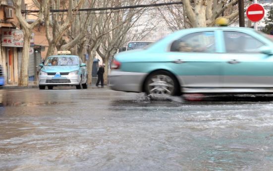 ”左近的一位市民说。记者看到,茂田巷上一家单位门前的水泥路面被大水冲的四分五裂;旁边停了一辆出租车,司机正在用积水擦车……