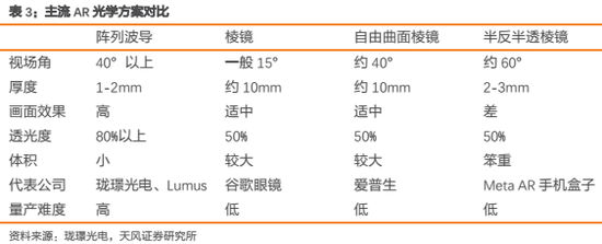 重点关注AR/VR技术创新,光波导模组需求往年无望打破。3月28日,国际创业公司珑光电正式对外发布了其最新的具有40度视场角的光波导AR模组。从技术道路看,AR光学技术阅历四代开展:离轴光学--->棱镜光学--->自在曲面棱镜--->波导(分为阵列波导和全息波导),四代技术镜片厚度递加、视场角递增、技术壁垒及本钱递增。光波导在视场角、厚度、画面效果、透光度方面具有优势,但目前最大成绩是难以量产,这也是目前光波导的AR眼镜数量少的缘由。