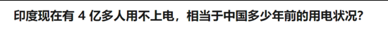 其次,印度还有2亿多人没用上电,中国2015年就户户通电了。