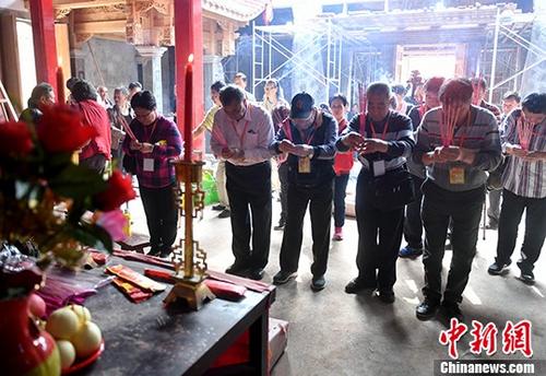 4月5日,马祖参访团在福州琅岐陈氏祠堂谒拜祖先。 中新社记者 吕明 摄