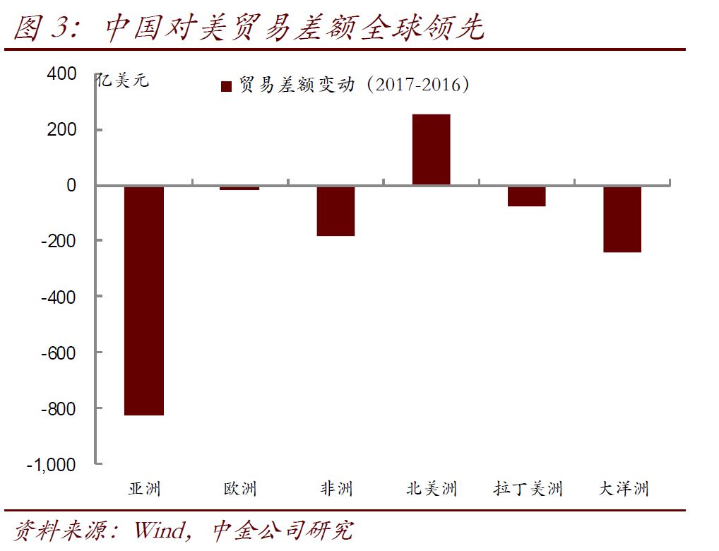 2017年,中国对美贸易顺差2779亿美元,到达历史最高。从中国2017年对外贸易来看,总计贸易顺差4208亿元,贸易差额较2016年有分明收窄,但对美贸易顺差却有所扩展。