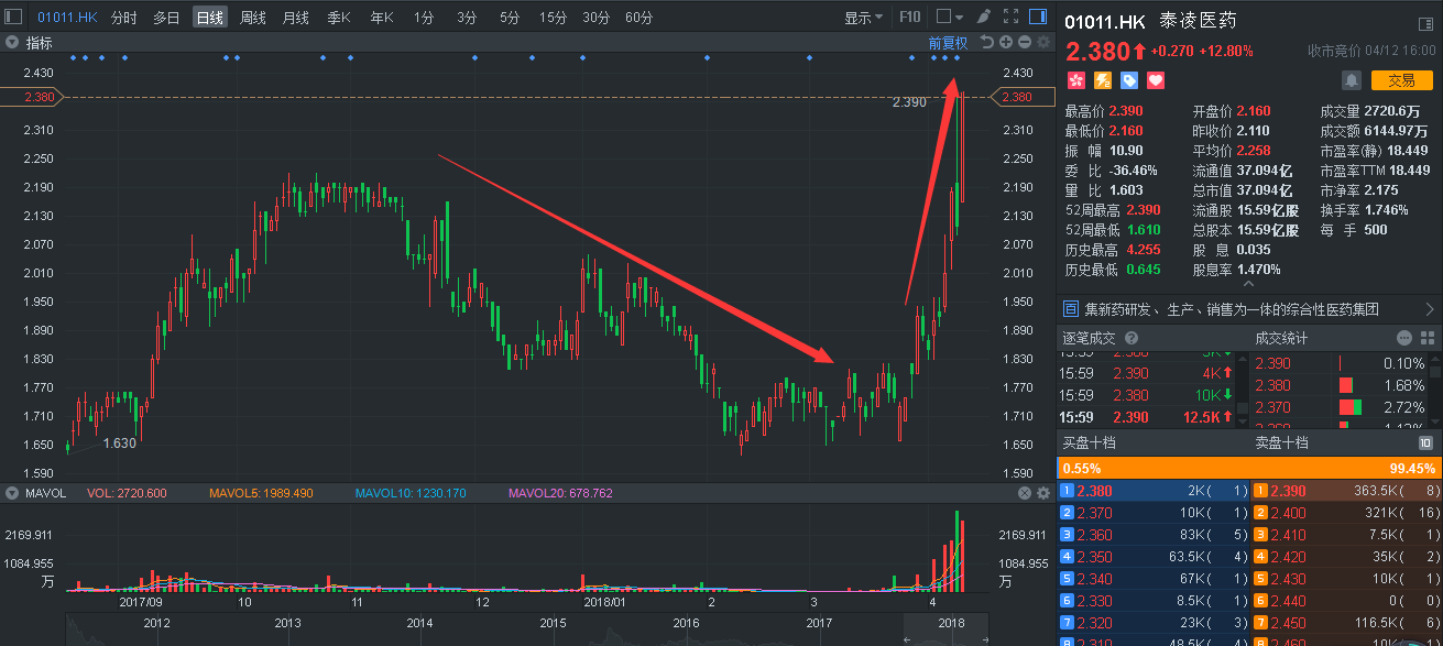 要晓得,2.39港元的价位还得追溯到2015年6月。