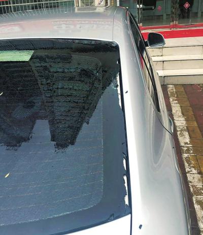 胡先生反映,4月13日晚,他回到寓居的旗开新居小区,将轿车停放在小区外商铺门前的停车位上。“我回家较晚,也没买小区的地下停车位,只能将车停在小区里面。”4月14日早上7时,胡先生接到小区楼下一家公司保安打来的电话,“你车被砸了,赶忙来看看。”