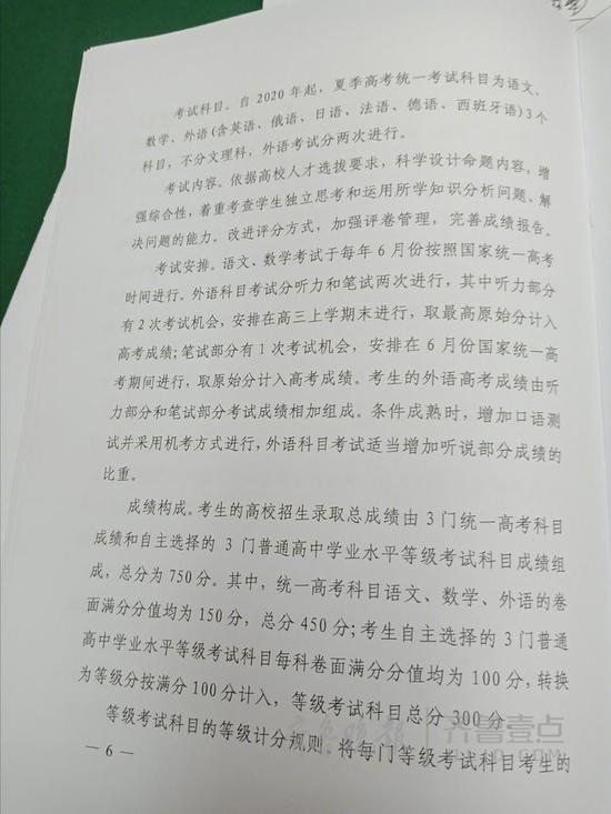 成果构成,考生的总成果由3门一致高考科目成果和自主选择的3门普通高中学业程度等级考试科目成果组成,总分750分。