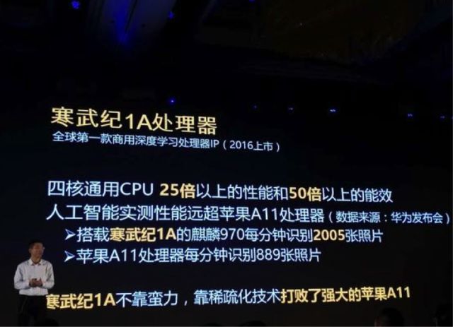 在处置人工智能使用时,“寒武纪1A”的功能是4核CPU的25倍以上,而耗用的电量却只要五非常之一。
