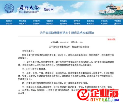 该校办公室随后发布《关于启动进攻暴雨洪水Ⅱ级应急呼应的告诉》,称7日下午有中雨到大雨,部分地域有暴雨,并伴有雷电,要求全校各单位立刻启动预案,坚持24小时值班,带班指导在岗在位,部署、落实各项防暴雨洪水措施。