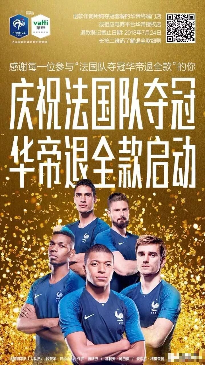 随着决赛夜终场哨响的那一刻,华帝的退款声明也如约而至。